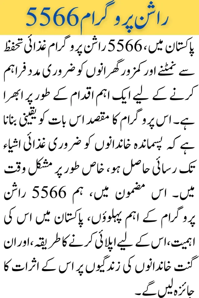 Poor people can get a subsidy, i.e., relief, in this program by texting their ID card number to 5566. Apart from this, you can get 4500 rupees from this program. This 4500 will be given to you when you are eligible for this ration program. This is the biggest reward for the poor people from the Government of Pakistan.