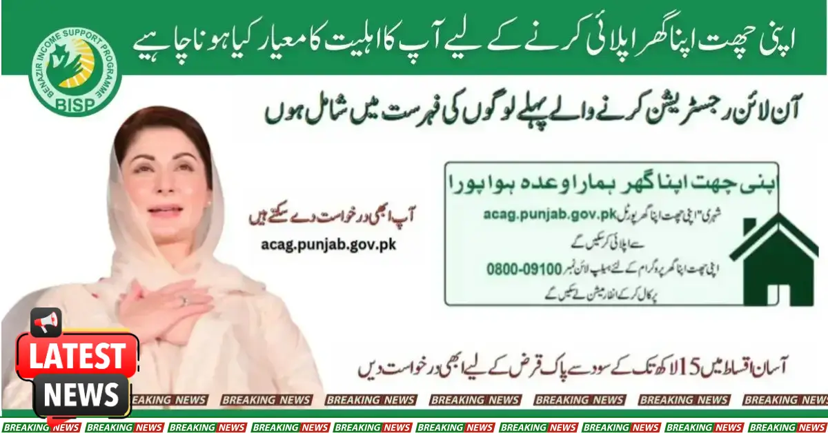 Punjab Chief Minister has inaugurated the Apni Chhat Apna Ghar scheme. Who can apply? Maryam Nawaz says that her house will be loaned without interest for her scheme. The application will be submitted online.