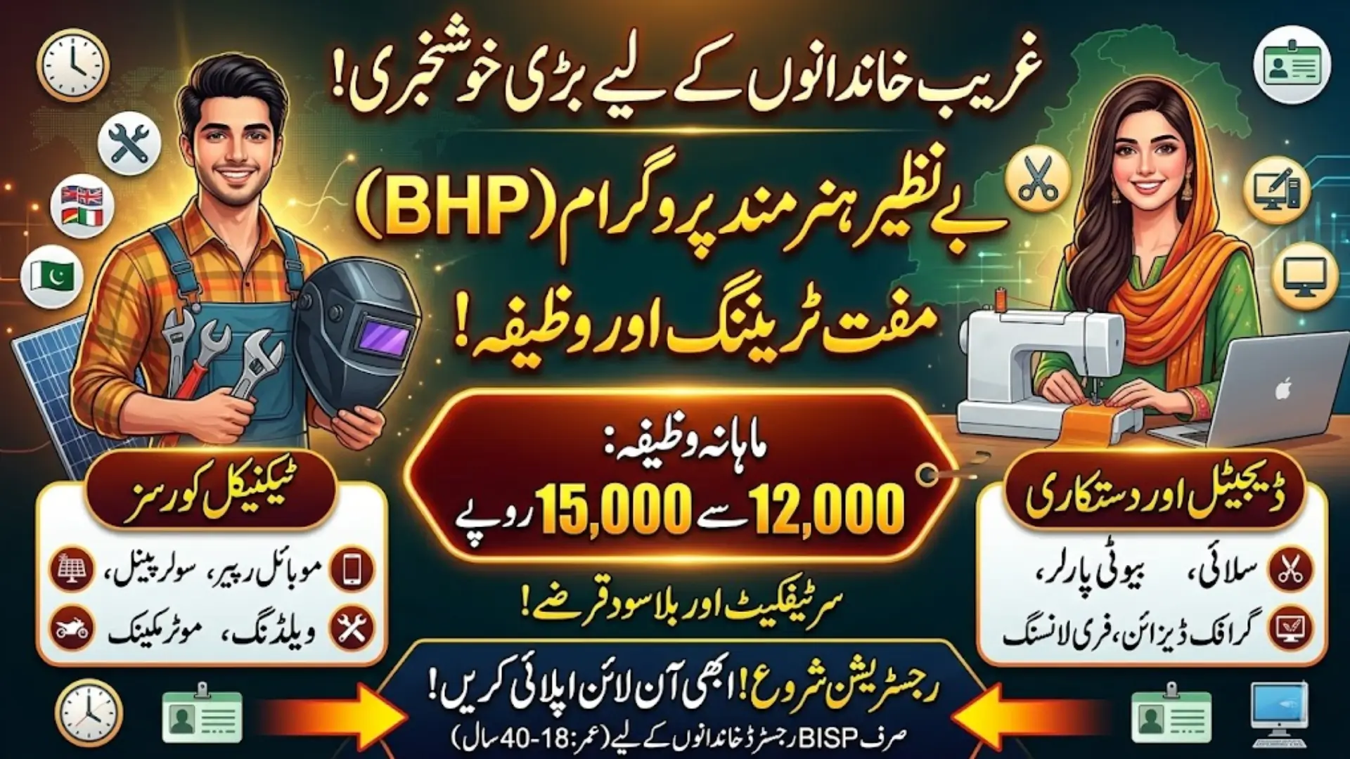 - Eligibility: BISP-registered family, age 18–40, Matric / CNIC