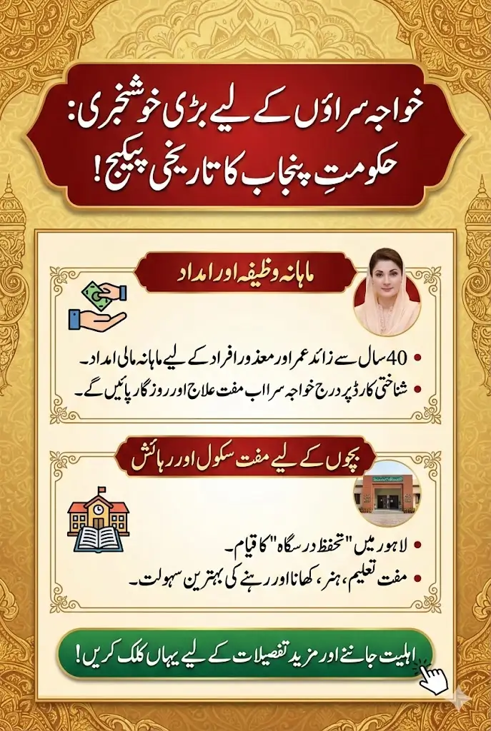 Chief Minister of Punjab says that all people should be given equal rights. That is why it is our first duty to give their rights to the eunuchs. It aims to provide livelihood, education, housing, and healthy food to transgender individuals. So that they are not deprived of these facilities. In her address, Chief Minister Maryam Nawaz decided to provide better facilities to transgender women as well as a quarterly stipend.