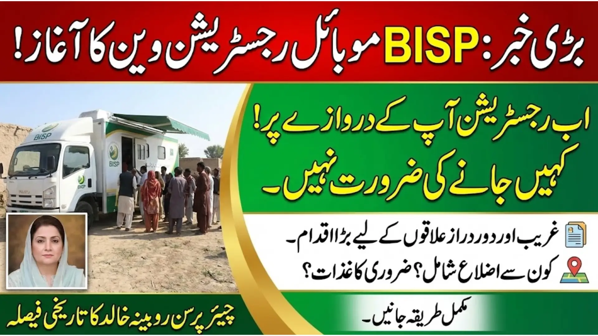 BISP Chairperson Rubina Khalid launched the BISP Mobile Registration Van for the poor and deserving people. In the Benazir Income Support Program, many people are deprived of assistance despite deserving, hence Shazia Murree had to start the BISP mobile van after receiving many complaints. There are still people in the BISP program who are not yet in the program and missed out on getting assistance.