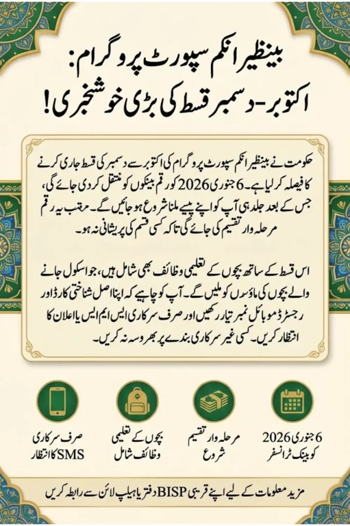 After funds reach banks, BISP announces the official payment schedule. Notifications are shared via SMS, local offices, and verified media sources. Relying on unofficial sources can cause confusion and wasted travel.