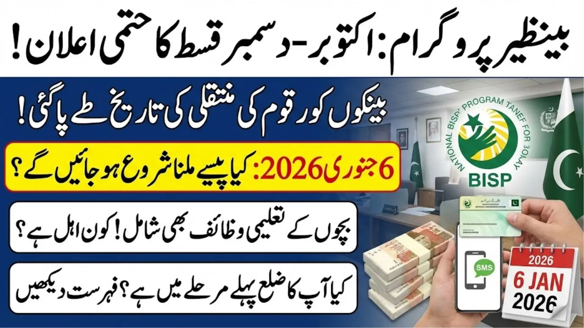 The Benazir Income Support Program (BISP) October–December payments are moving toward disbursement. Millions of Pakistani families rely on this support for daily household expenses. The latest update confirms that all payment-related preparations for this quarter have been completed. Funds will be sent to partner banks on January 6, 2026, marking a key step before cash reaches beneficiaries. Understanding the process helps families prepare and avoid unnecessary travel or confusion.
