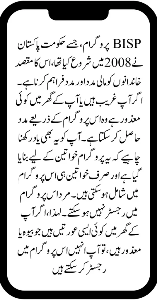 The BISP program, which was launched by the Government of Pakistan in 2008, aims to provide financial assistance and support to families. If you are a poor person or have someone in your home who is disabled. He can get assistance through this program.