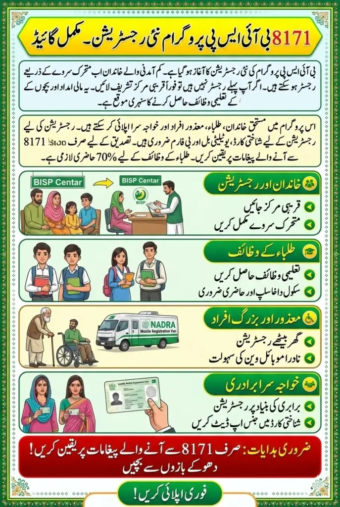 The 8171 BISP Program New Registration has officially started for eligible families across Pakistan. The Benazir Income Support Program is one of the largest social welfare initiatives designed to support low-income households by providing financial assistance and educational scholarships.