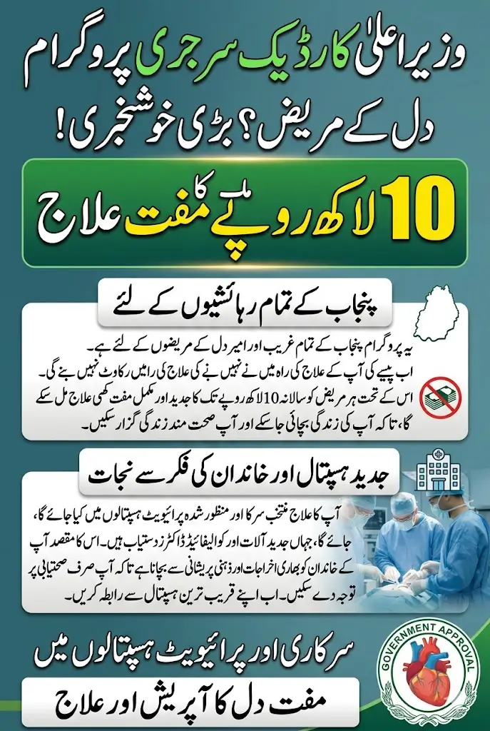 The Chief Minister Cardiac Surgery Program is a major healthcare initiative designed to support heart patients across Punjab. Heart diseases are among the leading causes of death, and timely treatment is often expensive and out of reach for many families. This program aims to remove financial barriers and ensure that every citizen has access to life-saving cardiac care. By offering free and timely treatment, the government is taking a strong step toward improving public health and saving lives.