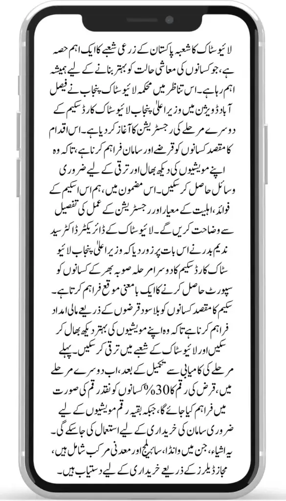 The main objective of the Chief Minister Punjab Livestock Card Scheme is to provide farmers with access to structured loans and regulated input supplies. Through this scheme, farmers can not only get the financial resources required to take care of their livestock, but they will also be provided with good-quality livestock feed and other essential supplies. This scheme will bring about many important changes in the lives of farmers. This scheme will not only help in improving their economic condition but will also increase the health and production of livestock, which is of utmost importance for the agricultural economy of the country.