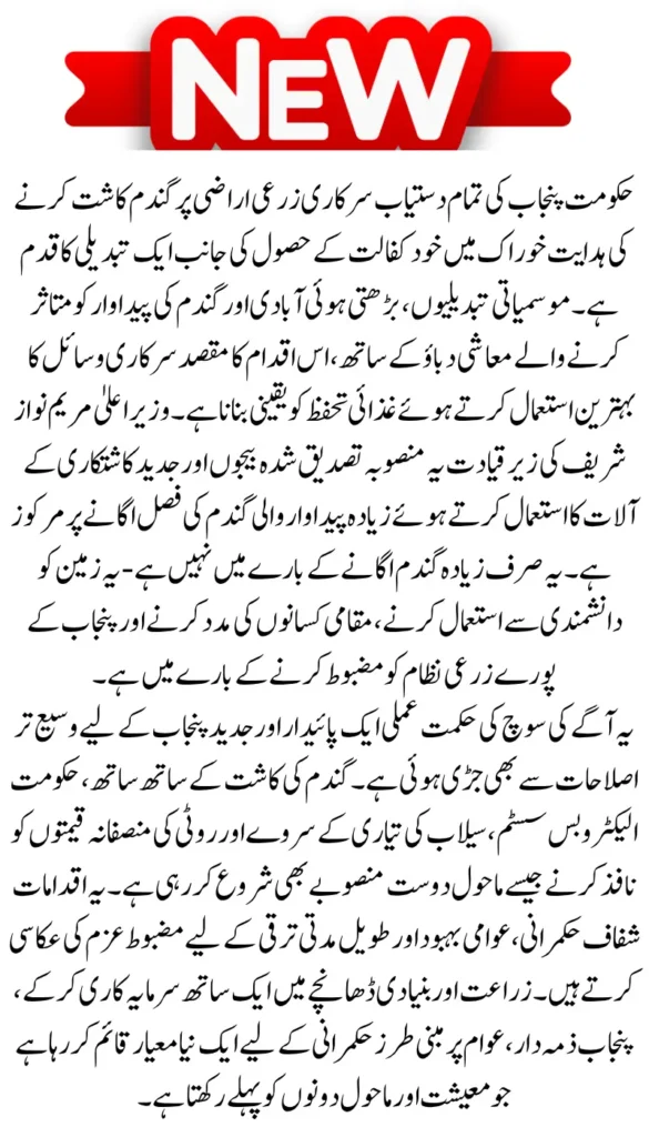 Punjab’s decision to cultivate wheat on state-owned lands underlines a vision of self-sufficiency, modernization, and inclusive growth. By leveraging government land with certified seeds, modern techniques, and robust oversight, this directive positions Punjab to confront food challenges and uplift its rural communities. More than a policy, it’s a step toward a green, resilient, and prosperous province that values both its land and its people.