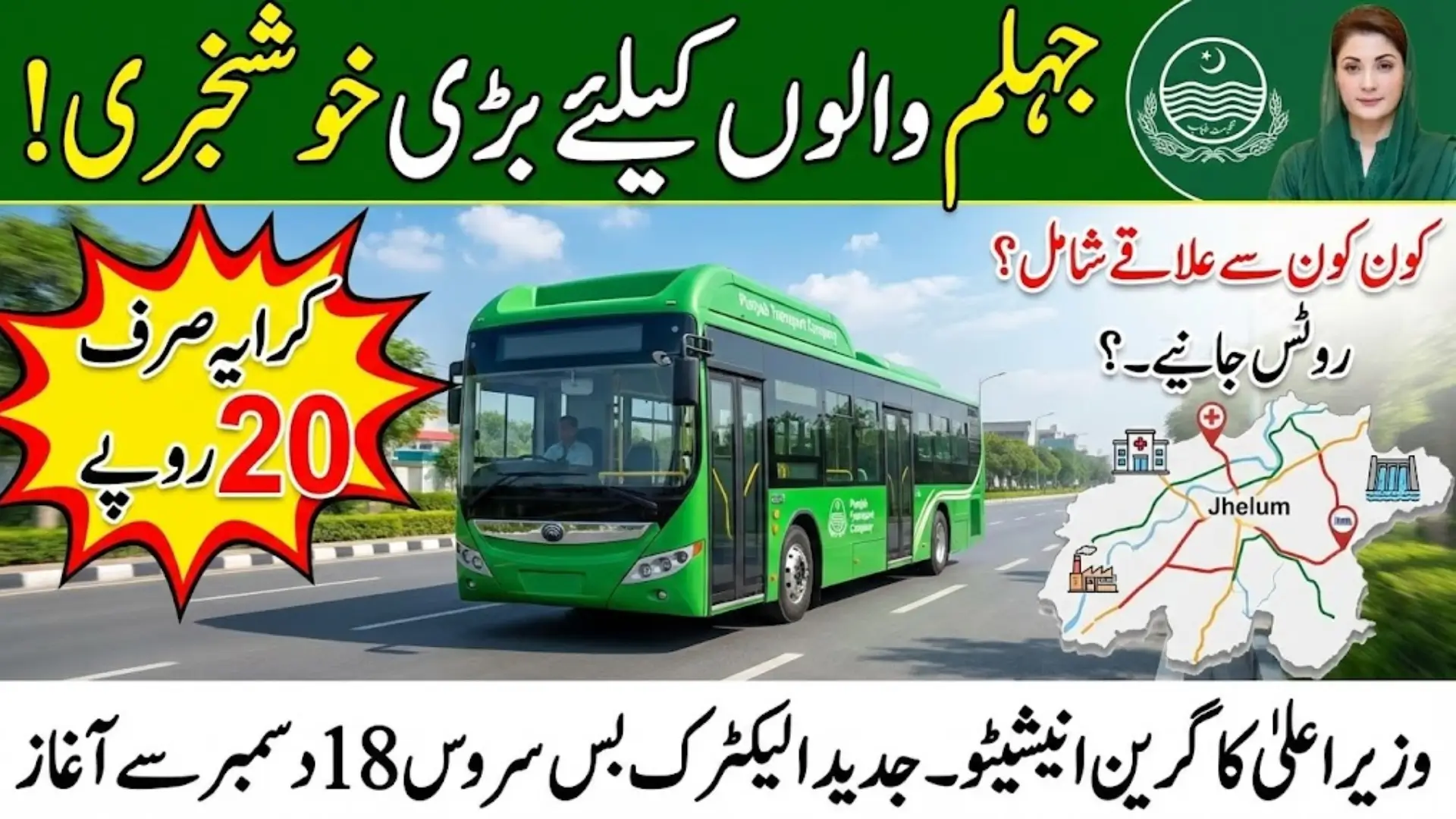 The Punjab Transport Company has announced the launch of an electric bus service in Jhelum under the Chief Minister’s Green Initiative. This new service aims to provide eco-friendly public transport while reducing environmental pollution. Operations will begin on December 18, 2025, offering residents a modern, sustainable commuting option.