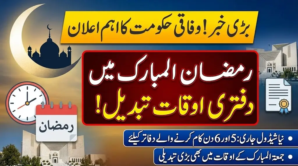 The Federal Government has issued a Ramadan office timings notification announcing revised working hours for federal institutions during the holy month of Ramadan. This change aims to accommodate employees observing fasting while ensuring that public services continue efficiently.