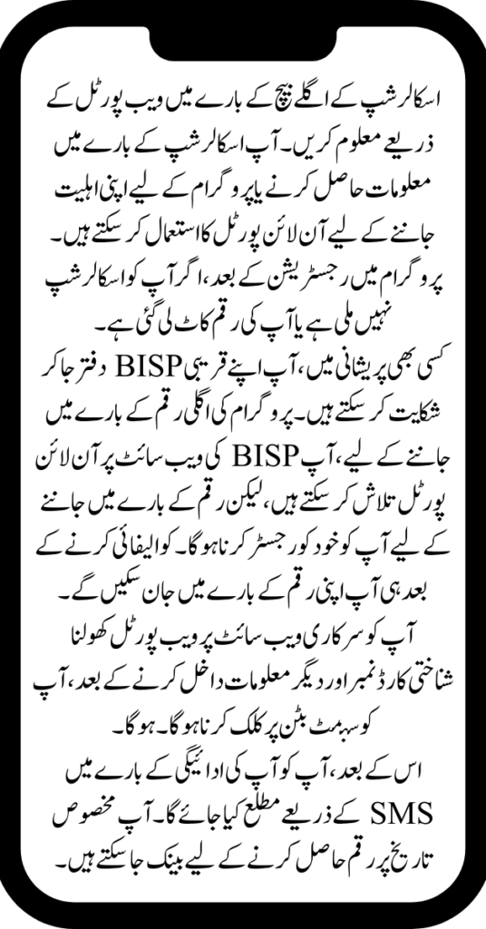 After providing your complete information, you will receive a payment SMS message. For more information, you can check the BISP website and also visit this web portal again to learn about the next payment. The government has started a relief program for those who are not educating their children. Find Out About the Next Batch of Scholarships.