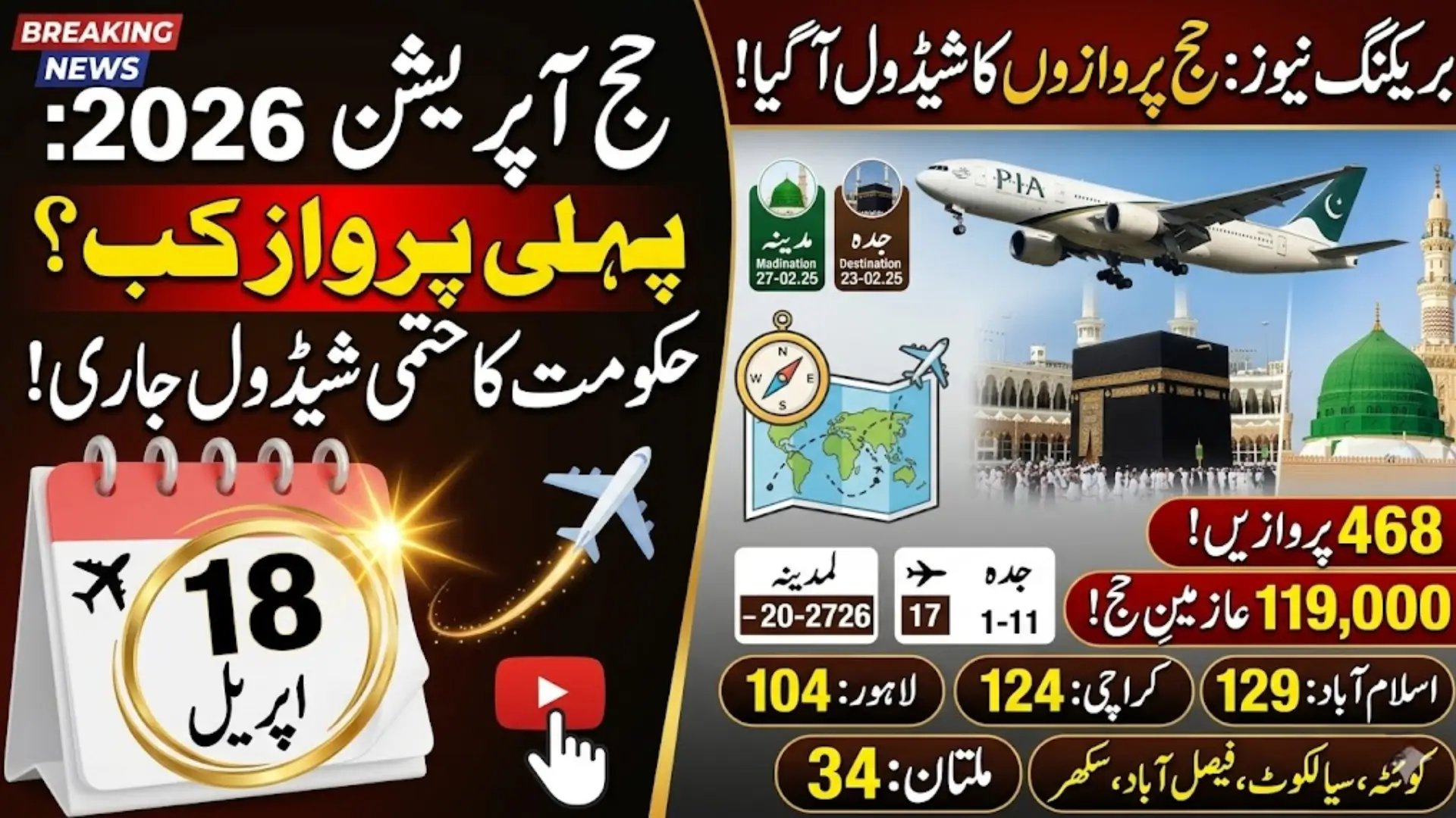Hajj is one of the most important religious journeys for Muslims around the world, and Pakistan is preparing for a smooth and well-organised Hajj Operation 2026. This year, the government has planned a detailed schedule to ensure that thousands of Pakistani pilgrims reach the Holy Hijaz safely and on time. According to the Ministry of Religious Affairs, the first Hajj flight from Pakistan will depart on April 18, 2026, marking the official start of the Hajj operation.