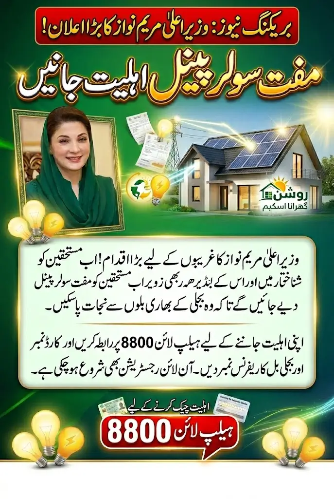 Helpline Number 8800 to Know Eligibility in Solar Panel Scheme has been provided by Chief Minister Maryam Nawaz to know eligibility in the solar panel scheme. Those who want to benefit from this program can easily check their eligibility. It was announced in a special meeting chaired by Chief Minister Punjab Maryam Nawaz and President Non-League Nawaz Sharif that free panels will be given to the deserving.