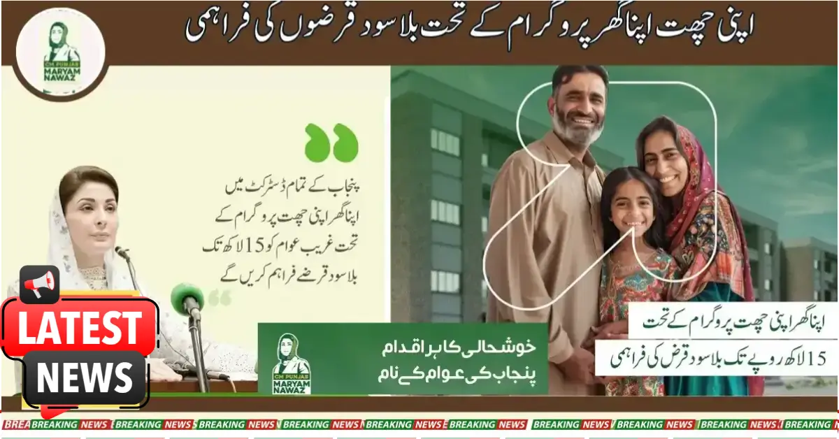 The Punjab government has announced the provision of interest-free loans under the Apni Chht Apna Ghar program. Punjab Chief Minister Maryam Nawaz said that many poor people in the country have their own piece of land. But they live in a rented house forever, because they don’t have the resources to build their own house. These people will be provided loans of about 15 lakh rupees under their own house and roof scheme. These loans will be provided to those persons whose names about 2, 3, or 5 marla plots are registered.