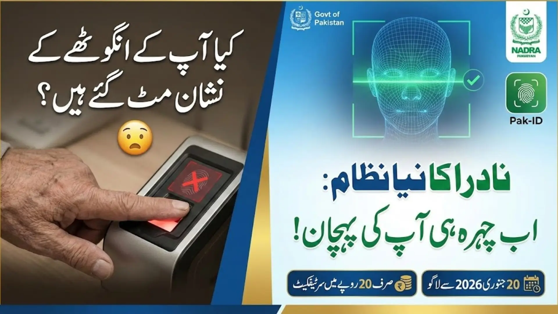 From 20 January 2026, NADRA will issue facial recognition-based biometric verification certificates nationwide. These certificates are meant for citizens whose fingerprint verification fails. A citizen can obtain the certificate from any NADRA Registration Centre for a fee of Rs 20.
