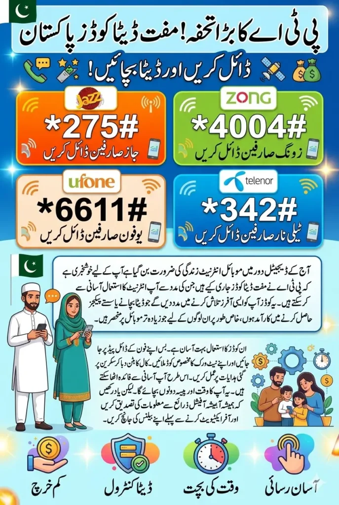 The Pakistan Telecommunication Authority (PTA) is known for regulating telecom services and guiding users about safe and efficient mobile usage. According to the shared information, users can dial specific codes on their mobile networks to explore data-saving or free data-related options.
