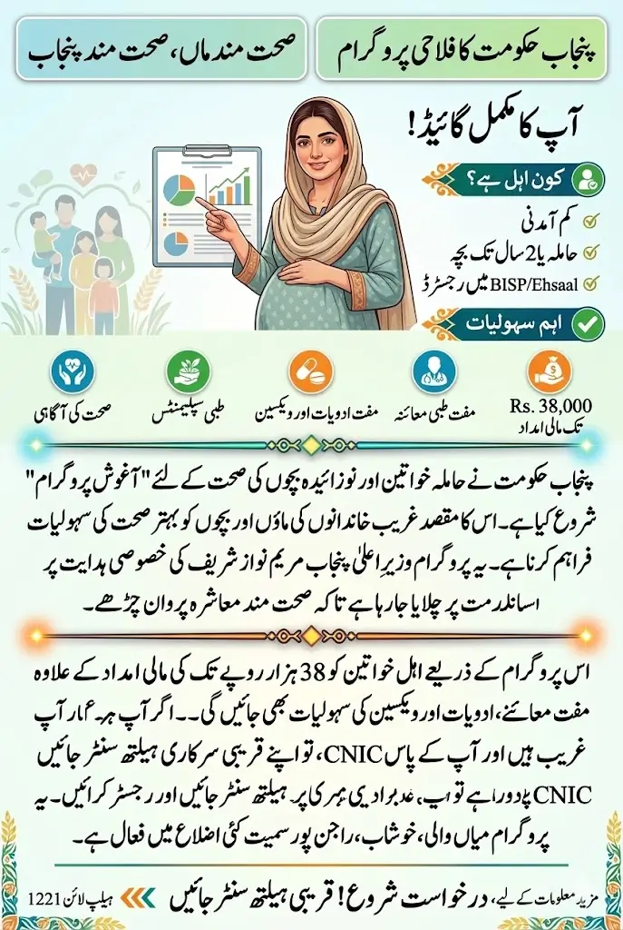 The Punjab Aghosh Program 2026 is a valuable initiative designed to support pregnant women and newborn mothers in underprivileged communities. By providing financial assistance of Rs. 38,000, along with free healthcare services, nutritional support, and awareness programs, the government aims to improve maternal and child health across Punjab.