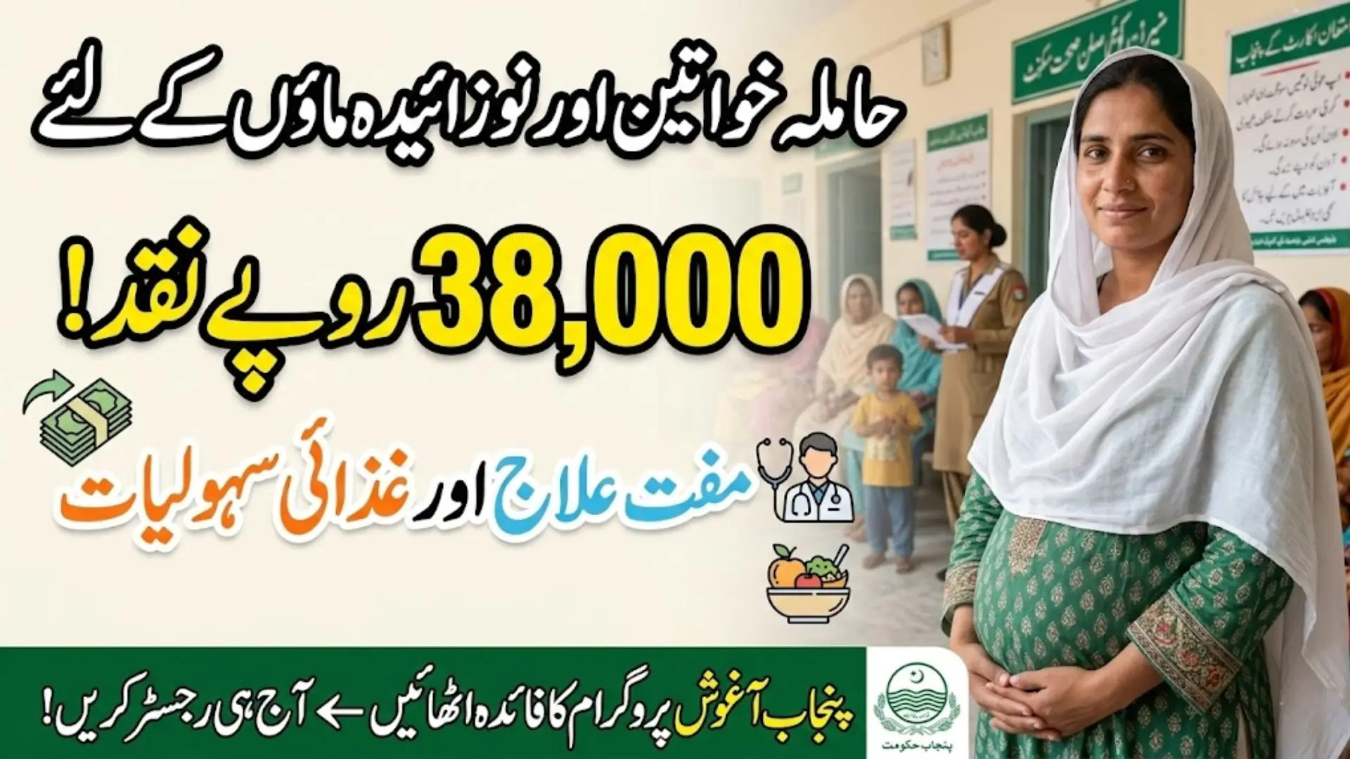 Through the Punjab Aghosh Program, eligible women can receive up to Rs. 38,000 along with access to essential healthcare services such as medical check-ups, medicines, vaccinations, and nutrition guidance. The program also promotes awareness about maternal and child health so that mothers and babies remain healthy during the critical early stages of life.