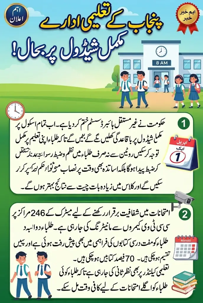 As part of the new plan, schools across Punjab will operate five days a week. This regular routine will help students stay disciplined and more engaged in their studies.