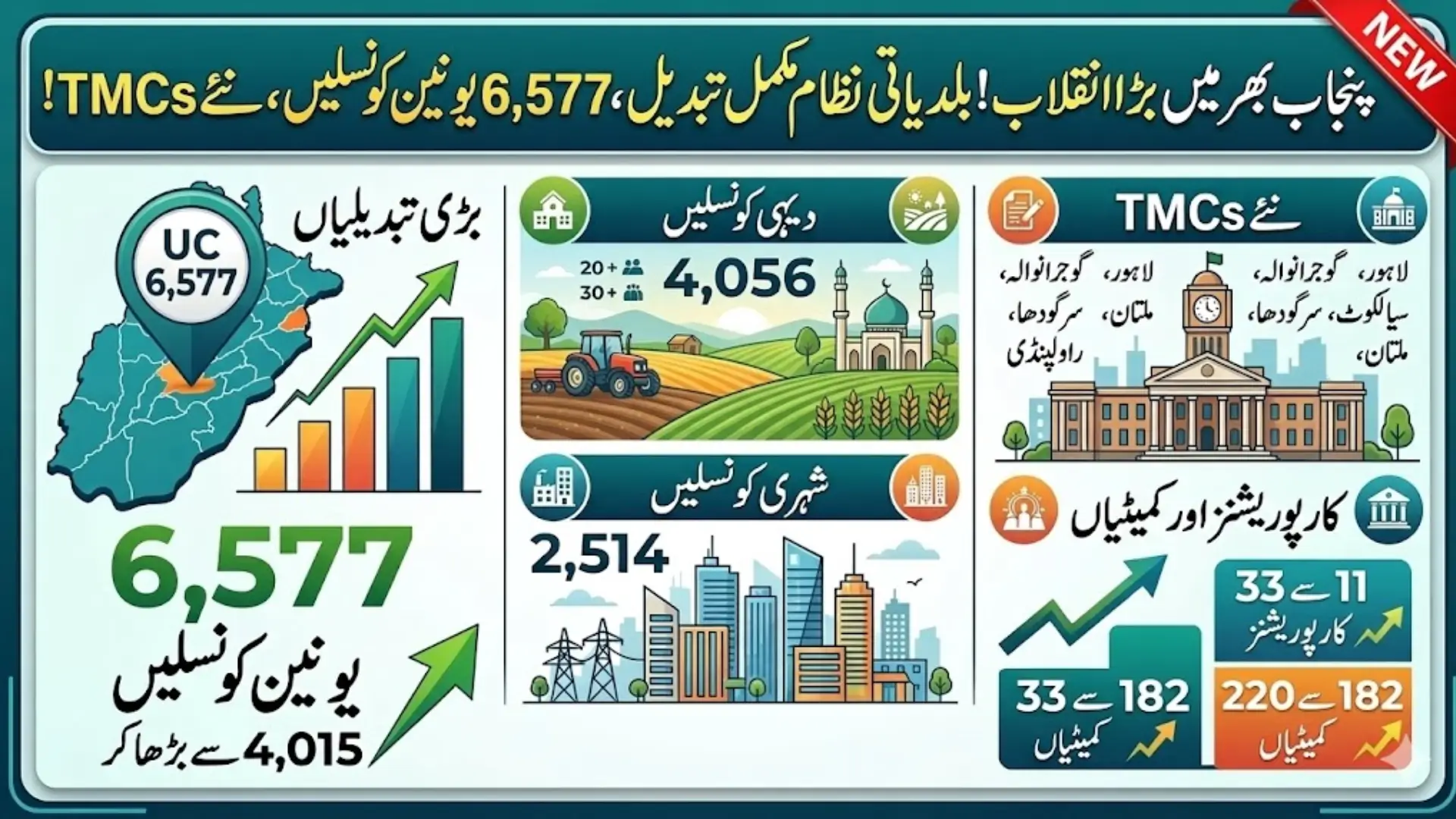 The Punjab government has announced a major restructuring of local government bodies, significantly increasing the number of Punjab union councils from 4,015 to 6,577. This move aims to enhance administrative efficiency, improve local governance, and ensure better service delivery to citizens across both urban and rural areas.