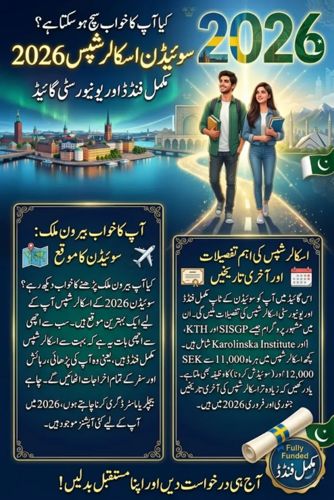 If you are dreaming of studying abroad, Sweden Scholarships for Pakistani Students 2026 offer an excellent opportunity to turn that dream into reality. Sweden is known for its high-quality education system, innovative research, and welcoming environment for international students.