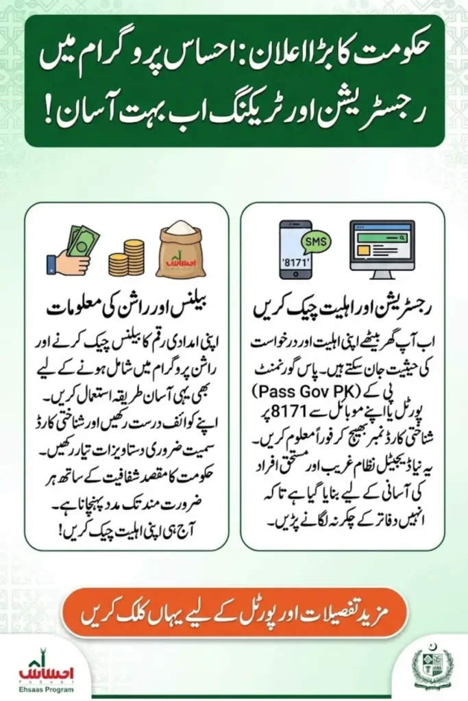 Ehsaas Tracking Pass Govt PK portal makes it easy for eligible persons to check their registration status and eligibility for the Ehsaas program. With multiple modes available, including online tracking through the 8171 portal and SMS, the government has made the process easy for the needy.