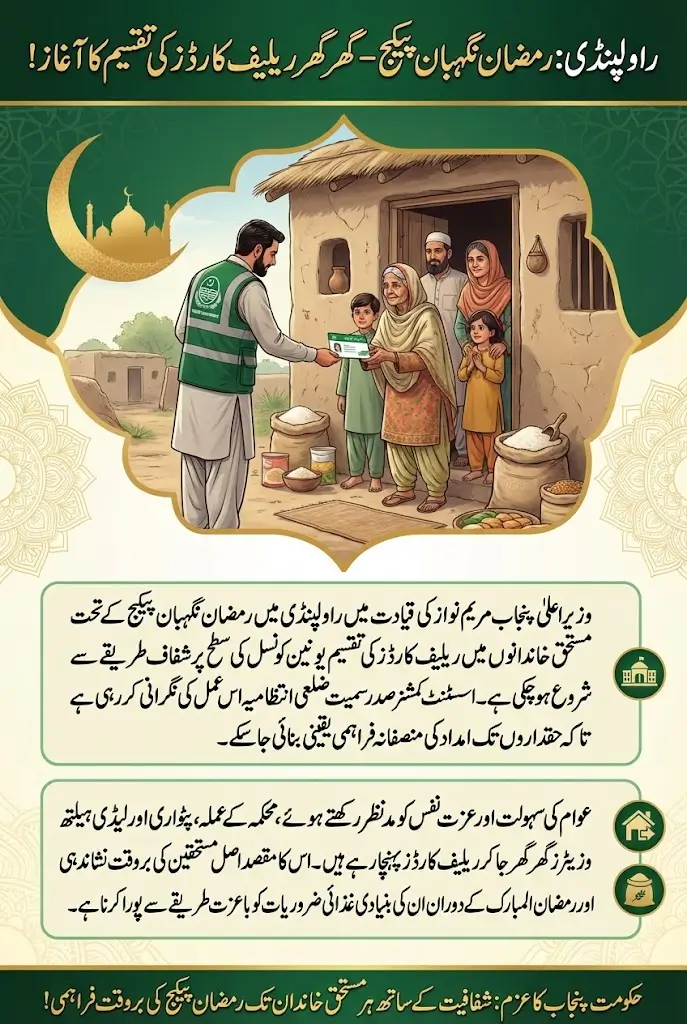 The distribution of relief cards under the Ramadan Nigahban Package has officially started in Rawalpindi, marking an important step toward supporting deserving families during the holy month of Ramadan. The initiative has been launched under the leadership of Punjab Chief Minister Maryam Nawaz to ensure that essential food assistance reaches those who need it most.