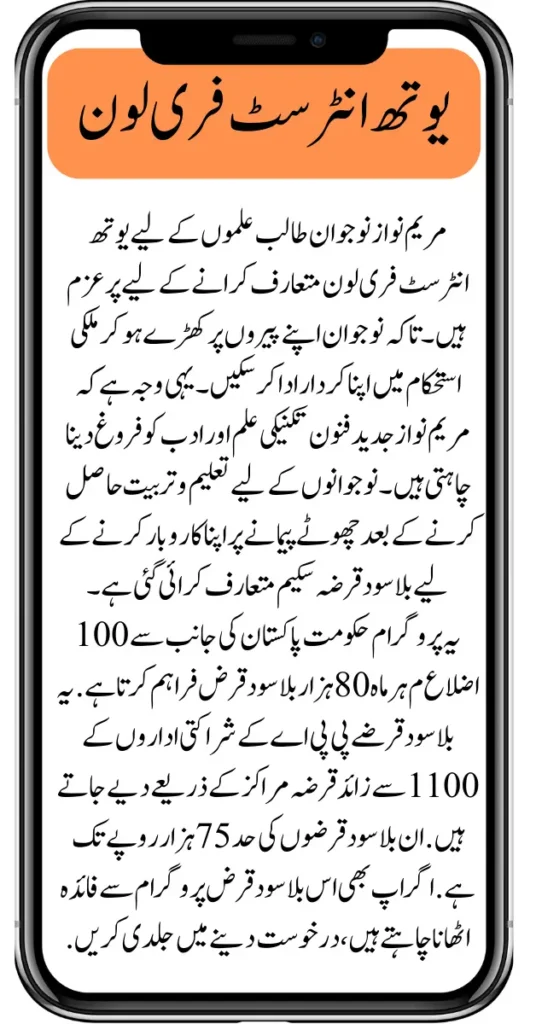 Punjab Chief Minister Maryam Nawaz has introduced a Youth Interest-Free Loan for young students. So that the youth can stand on their feet and play a better role in the country’s stability. Maryam Nawaz wants to promote modern arts, technical knowledge and literature through this program. An interest-free loan scheme has been introduced for the youth to start their own small-scale business after getting education and training. Employment opportunities are now being created for the youth.